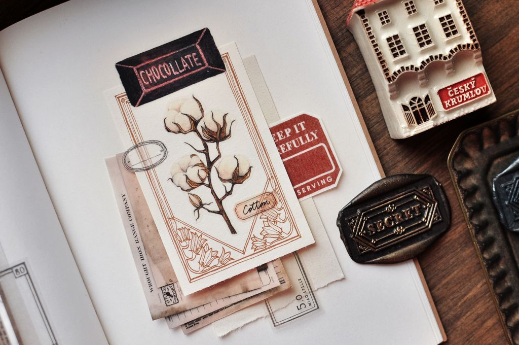 手帳、ノート、カードの飾り付け、封筒を貼る。