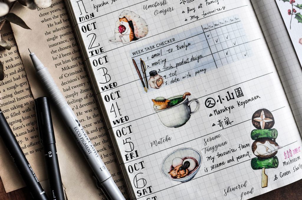 手帳、ノート、カードの飾り付け、封筒を貼る。