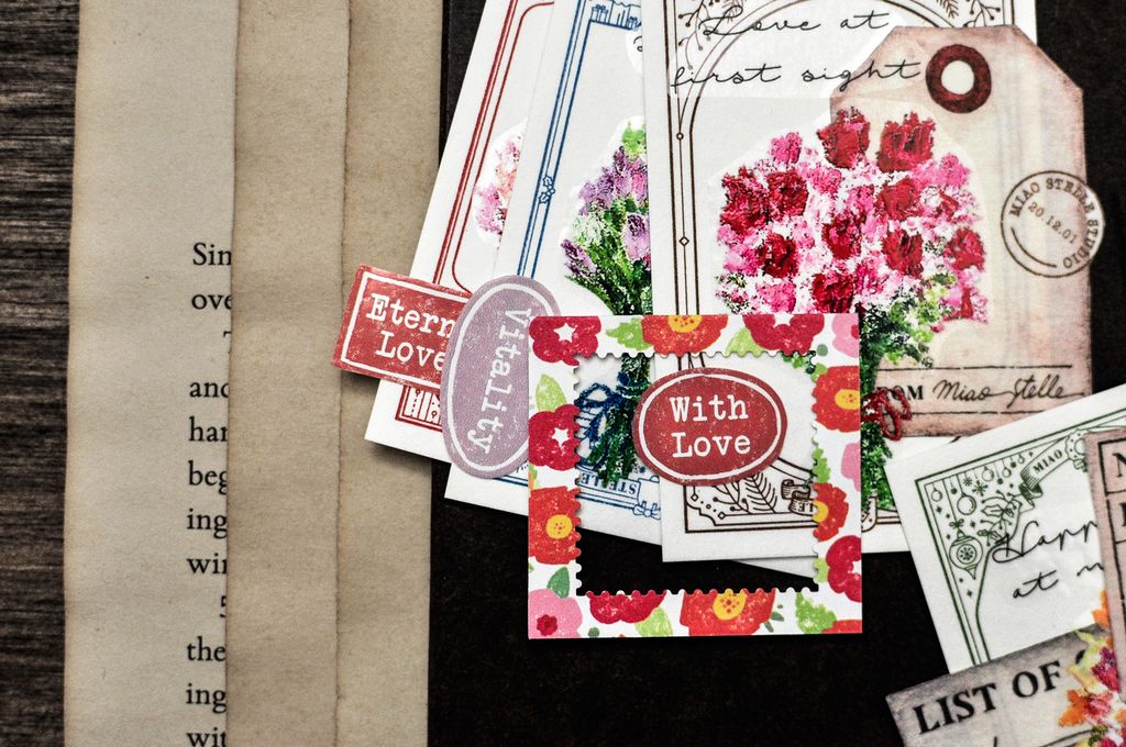 貼於手帳、筆記本、卡片裝飾、黏貼信封。